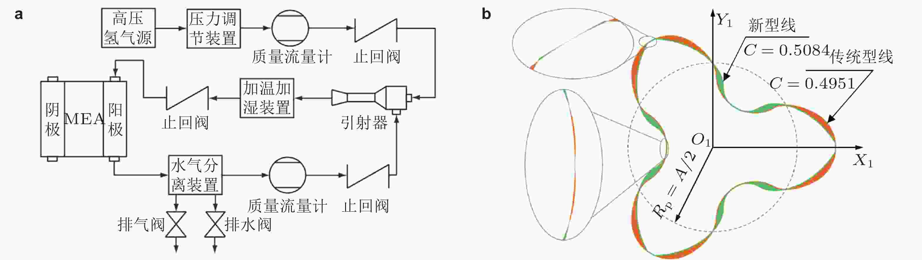 图 17 (a)氢气循环系统 (引射器) 组成及器件(赵海贺 等 2022); (b)三叶转子型线(Zhou et al. 2021b)