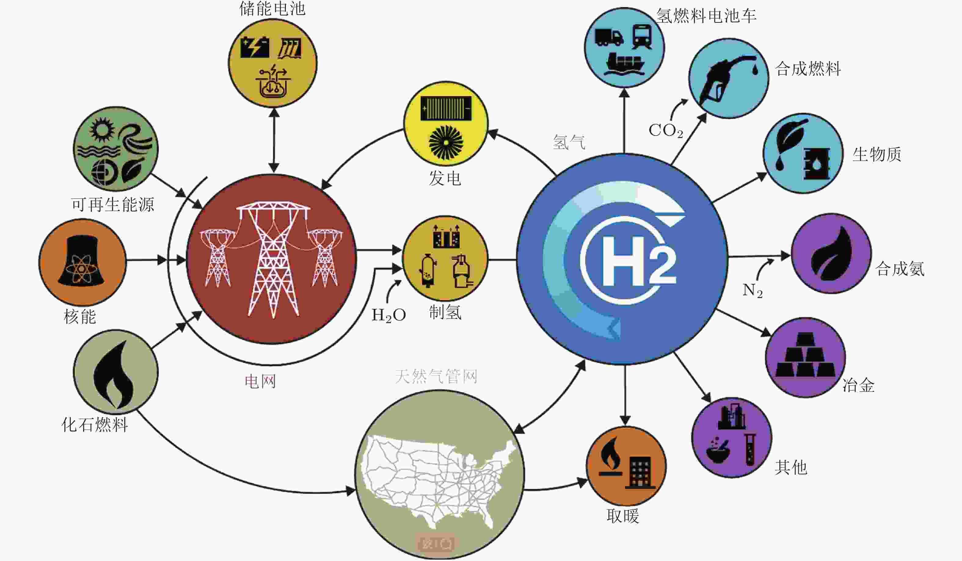 图 2 以氢能为枢纽的“能源互联” (本图源自网络公开资料, 原图出自(Ruth et al. 2020))