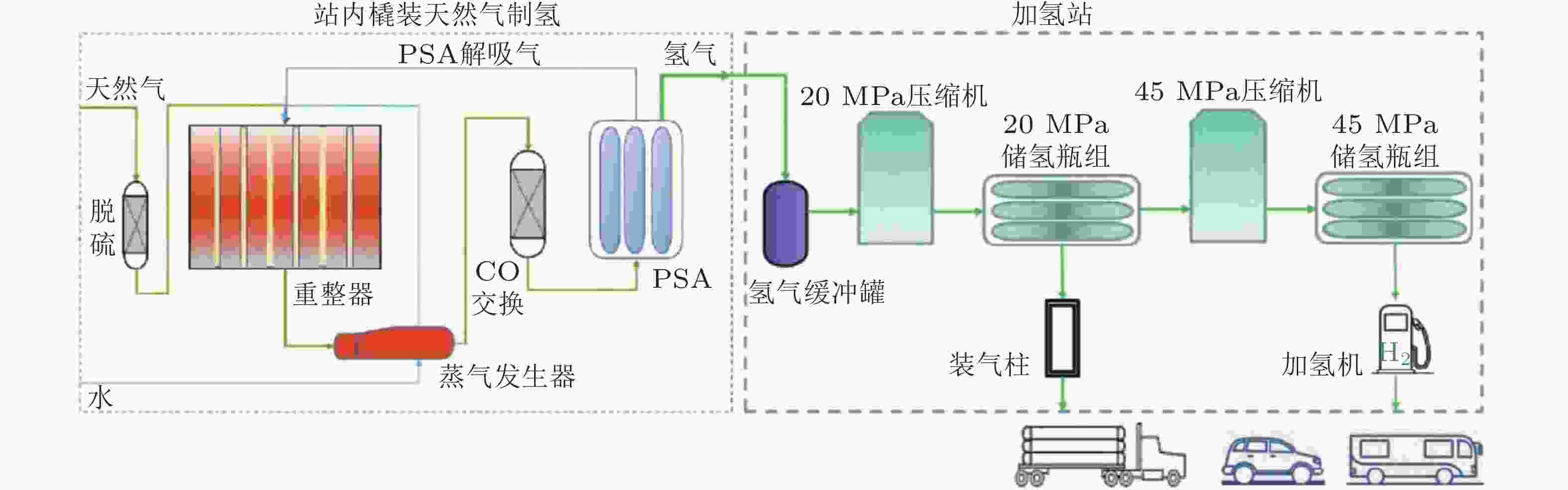 图 5 典型橇装天然气制氢加氢一体站工艺流程(宋鹏飞 等 2023)