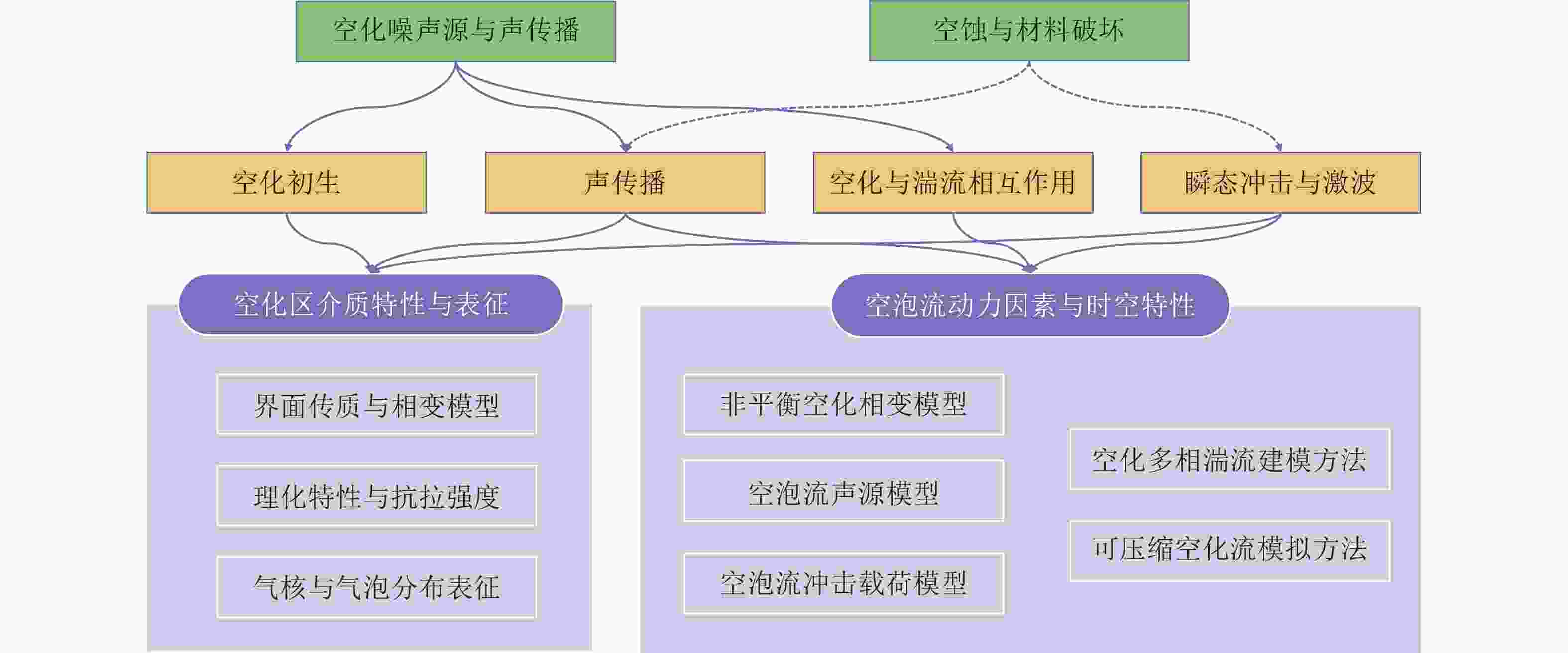 摘要: 水动力空化是船舶推进、航行体跨介质运动等领域一种常见的物理现象. 针对工程领域空化噪声和空蚀预报对非平衡空化流动研究的迫切需求, 回顾了20余年来空化核与初生、群泡水体介质特性与声传播、空化与湍流相互作用、空泡溃灭瞬态冲击与激波等关键基础科学问题研究的主要进展; 梳理出空化宏观模拟面临的空化相变建模、多相流模拟和多相湍流3个挑战, 指出多尺度空化模拟的重要性并对微介观模拟方法做了简要介绍; 总结了近年来空化流微介观模拟在空化区混合介质基本物理特性、空泡流场时空特性等方面获得的新认识以及高阶数值模拟方法. 面向高精度空化流动多尺度模拟与工程预报, 展望了定量、准确描述空化区域水汽掺混介质特性与空化流时空特性的两个层面迫切需要解决的若干基础性建模问题.Abstract: Hydrodynamic cavitation is a prevalent physical phenomenon in ship propulsion and underwater vehicles. To accurate prediction of cavitation noise prediction and cavitation erosion forecasting, this paper reviews key advances over the past two decades: nuclei and inception mechanisms of cavitation, pressure fluctuations and acoustic propagation across cloud cavitating regions, interaction between cavitation and turbulence, transient impact dynamics during cavity collapse and shock wave generation. Current research status and limitations are discussed through perspectives including phase transition model, multiphase flow simulation methodology, and cavitation-turbulence interactions. A concise overview is presented on multi-scale simulation methodologies for cavitating flows, summarizing recent insights into mixed-phase medium characteristics within cavitating zones and spatiotemporal evolution features of cavity fields derived from meso-scale simulations. For future development in multi-scale modeling and engineering forecasting of cavitating flows, the paper identifies two critical theoretical challenges requiring quantitative characterization: (1) fundamental modeling of vapor-water mixture properties in cavitating regions; and (2) precise representation of spatiotemporal dynamics of cavitating flows.