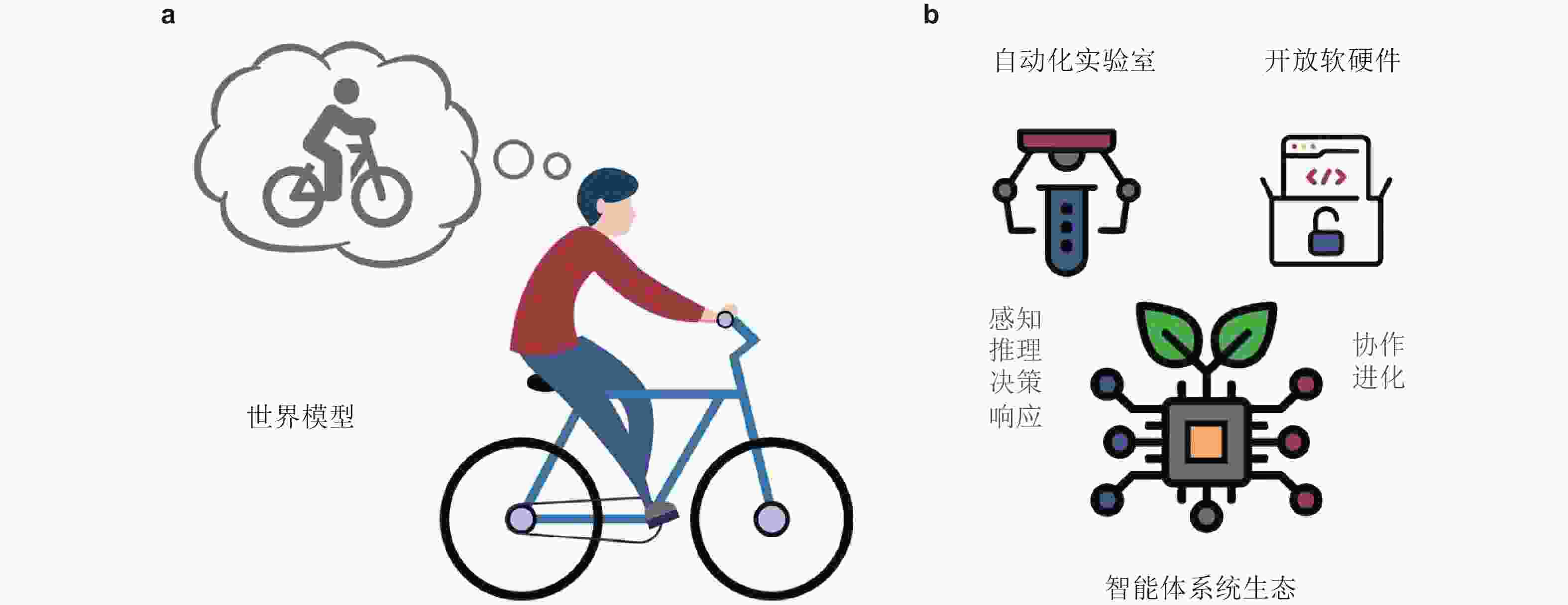 图 7 (a) 世界模型 (Ha & Schmidhuber 2018); (b) 智能体系统生态