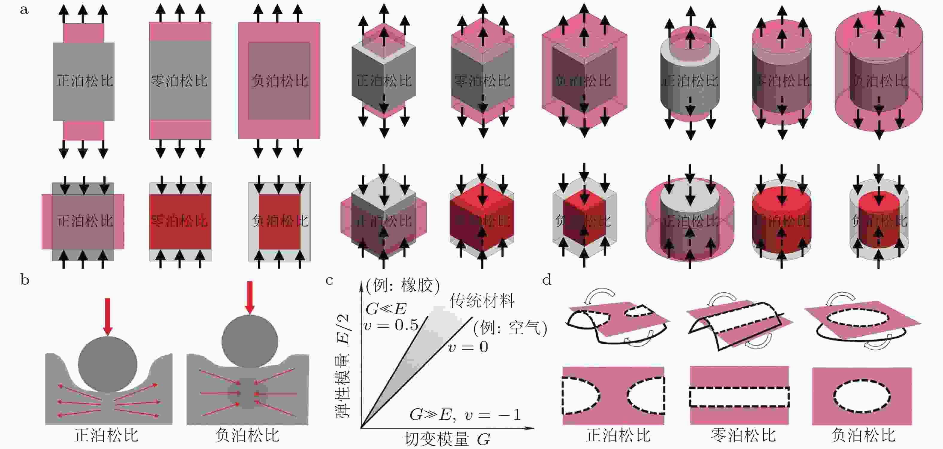 摘要: 非正泊松比力学超材料是一类通过构型设计在宏观尺度上展现零/负泊松比效应的结构型功能材料. 因其在横向变形调控、尺寸稳定性和能量吸收等方面的独特优势, 在航空航天、海洋工程、交通运输、可穿戴防护装备和生物医学等领域展现出广泛的应用前景. 近年来, 随着微结构设计、先进材料制备技术和多材料集成手段的不断演进, 非正泊松比力学超材料在构型多样性、响应调控性与结构功能一体化等方面取得了显著进展. 本文从激活结构横向变形行为的主导机理出发, 系统梳理了非正泊松比力学超材料的典型设计策略. 负泊松比超材料围绕内凹几何、旋转体系 (旋转刚体/桁架、手性/反手性)、剪纸/折纸、弹性不稳定诱导与刚体联动等机制组织. 零泊松比超材料归纳为类矩形/平行四边形、半内凹、正/负泊松比单元组合与刚柔复合等几何范式. 围绕非正泊松比力学超材料在缓冲吸能应用中的关键性能, 重点讨论了多平台响应设计、梯度构型调控、多材料耦合与智能材料介入等性能增强途径. 在结构集成层面, 本文还探讨了模块化组装、夹层结构设计与本征三维结构设计等技术路径. 最后, 结合非正泊松比力学超材料在设计制备、性能调控与系统集成中的研究进展, 梳理了当前面临的核心技术瓶颈, 明确了亟需突破的关键方向, 并提出了面向多尺度制造、多场响应集成与工程化应用的未来发展路径.Abstract: Non-positive Poisson’s ratio mechanical metamaterials are a class of architected functional materials that exhibit negative or zero Poisson’s ratio effect at the macroscopic scale through configuration design. Their distinctive capabilities in controlling transverse deformation, maintaining dimensional stability, and enhancing energy absorption confer significant potential for applications in aerospace, marine engineering, transportation, wearable protective equipment, and biomedicine. In recent years, continuous advancements in microstructural design, advanced material fabrication techniques, and multi-material integration methods have driven significant progress in non-positive Poisson’s ratio mechanical metamaterials, particularly in configuration diversity, mechanical response tunability, and multifunctional integration. Guided by the dominant mechanisms that activate transverse deformation, this paper systematically surveys the typical design strategies of non-positive Poisson’s ratio mechanical metamaterials. For negative Poisson’s ratio architectures, the discussion is organized around re-entrant geometries, rotating systems (rotating rigid-body/truss and chiral/anti-chiral configurations), kirigami/origami schemes, elastic instability-induced mechanisms, and rigid-body linkages. Zero Poisson’s ratio architectures are categorized into geometric paradigms, including rectangular/parallelogram-like, semi-re-entrant, positive/negative Poisson’s ratio unit combinations, and rigid-flexible composites. Focusing on performance requirements in cushioning and energy absorption, enhancement strategies include multi-plateau response designs, graded structural architectures, multi-material coupling, and the incorporation of smart materials. At the level of structural integration, technical pathways such as modular assembly, sandwich structure, and intrinsically three-dimensional architectures are reviewed. Finally, by synthesizing recent research progress on non-positive Poisson’s ratio mechanical metamaterials in terms of design and fabrication, performance regulation, and system integration, the current core technical bottlenecks are identified, the key directions for breakthroughs are clarified, and future development pathways for multiscale manufacturing, multifield response integration, and engineering applications are proposed.
