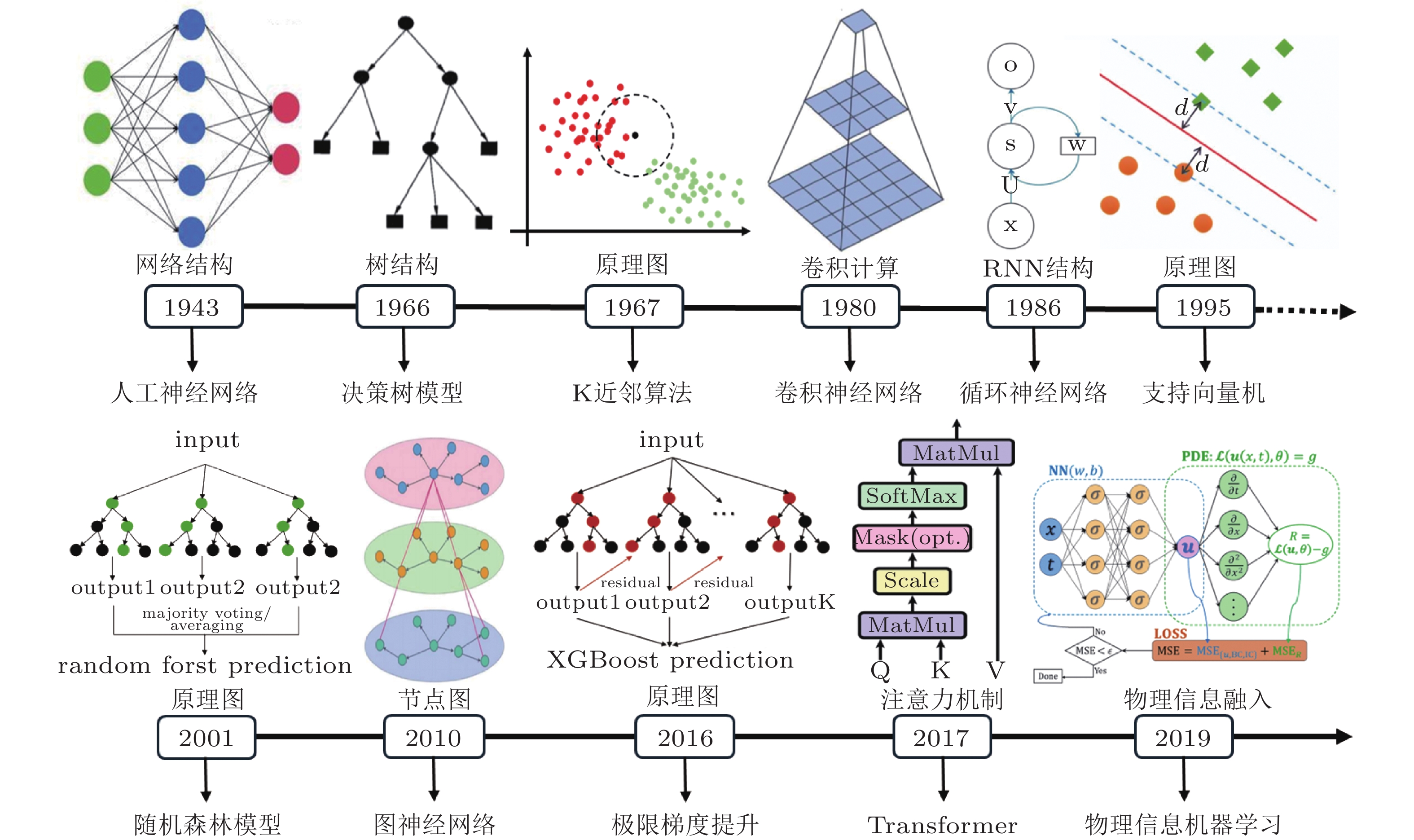 每个节点代表一个逻辑条件用于将输入数据划分为不同类别或分配数值. 具有可解释性, 能输出特征重要性排序. 模型参数较多, 调参过程复杂. 根据材料成分、工艺参数预测其性能特征, 或筛选潜力材料. 建立多组分钛合金成分与杨氏模量的关系(Yang F et al. 2020).