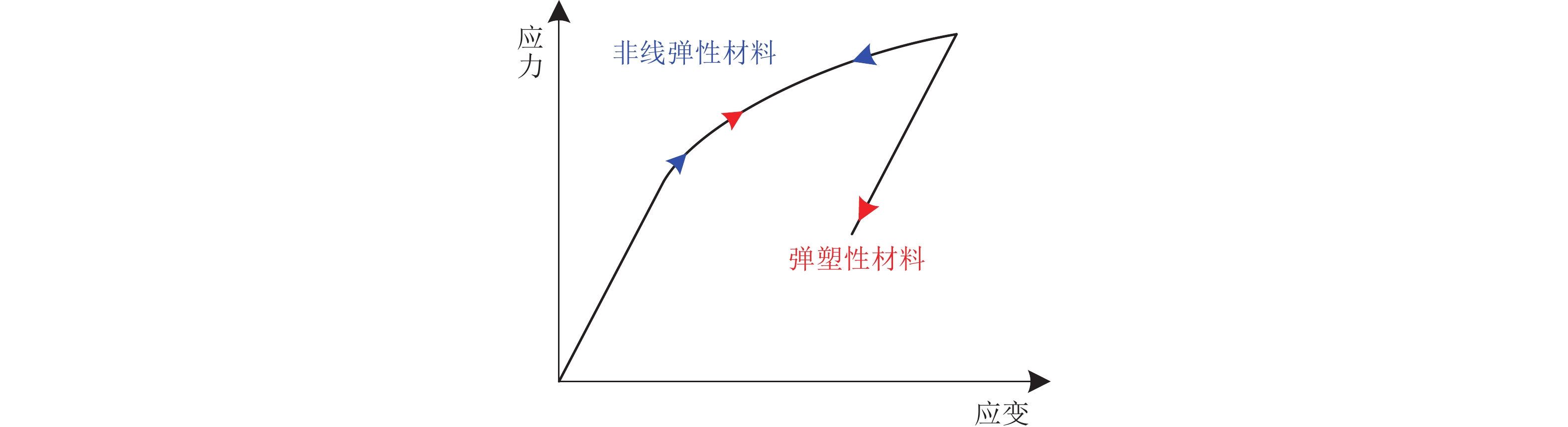 • 图  1  弹塑性材料与非线性弹性材料