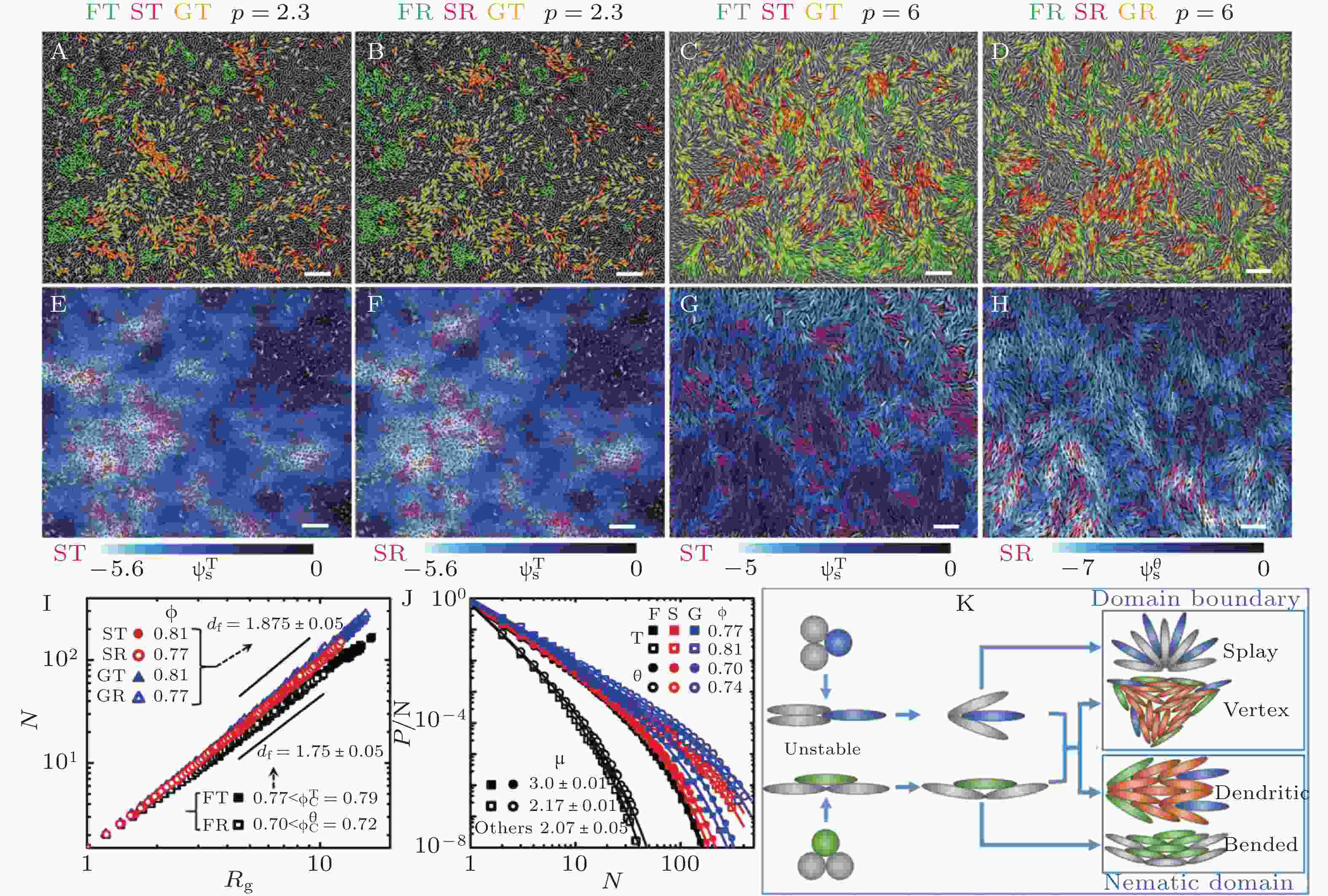图 5 胶体椭球单分子层玻璃化转变中的平移与旋转类临界行为 (Zheng et al. 2021)