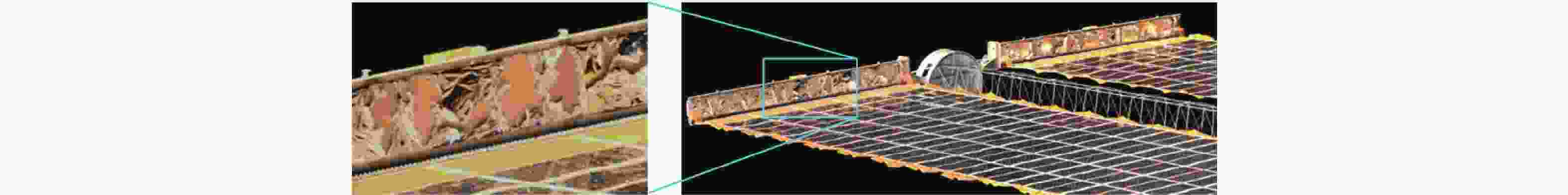 图 9 国际空间站P6桁架太阳翼结构经历1年空间辐照暴露后出现明显侵蚀破坏 (Adeoti 2022)